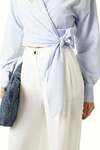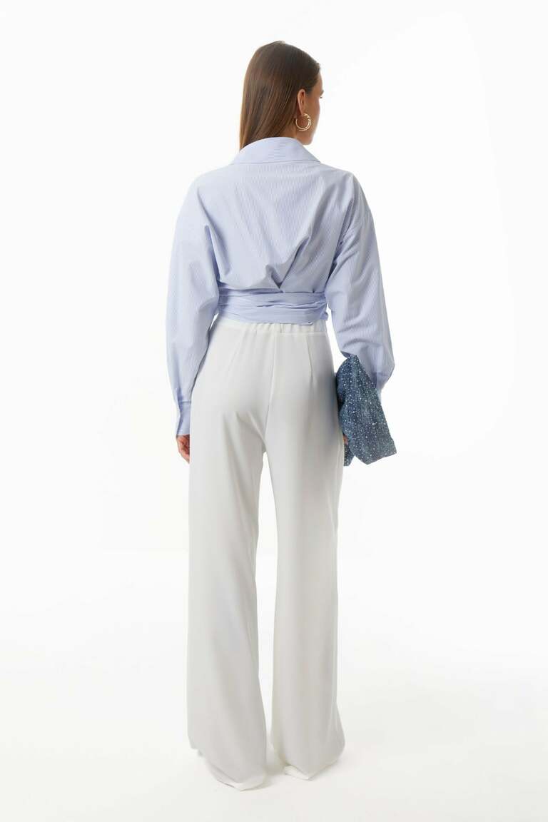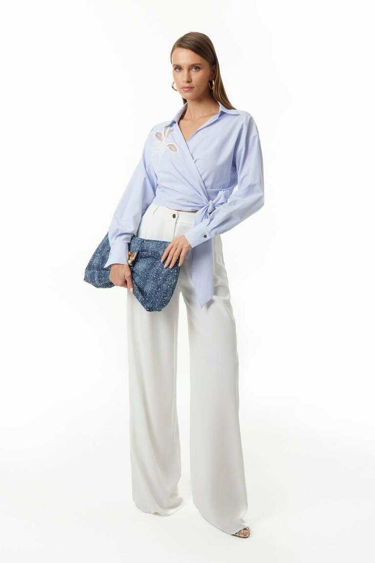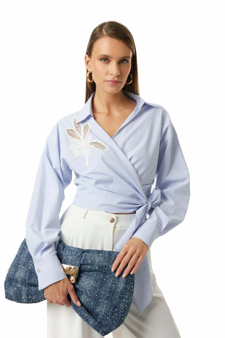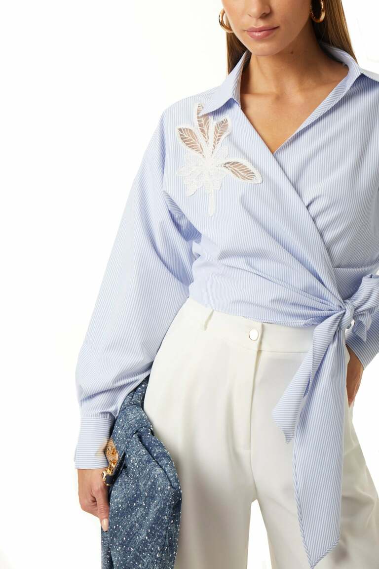 Kruvaze Bağlama Detaylı, Tek Omuz Dantel Detaylı, Uzun Kollu Pamuklu Poplin Gömlek.