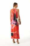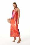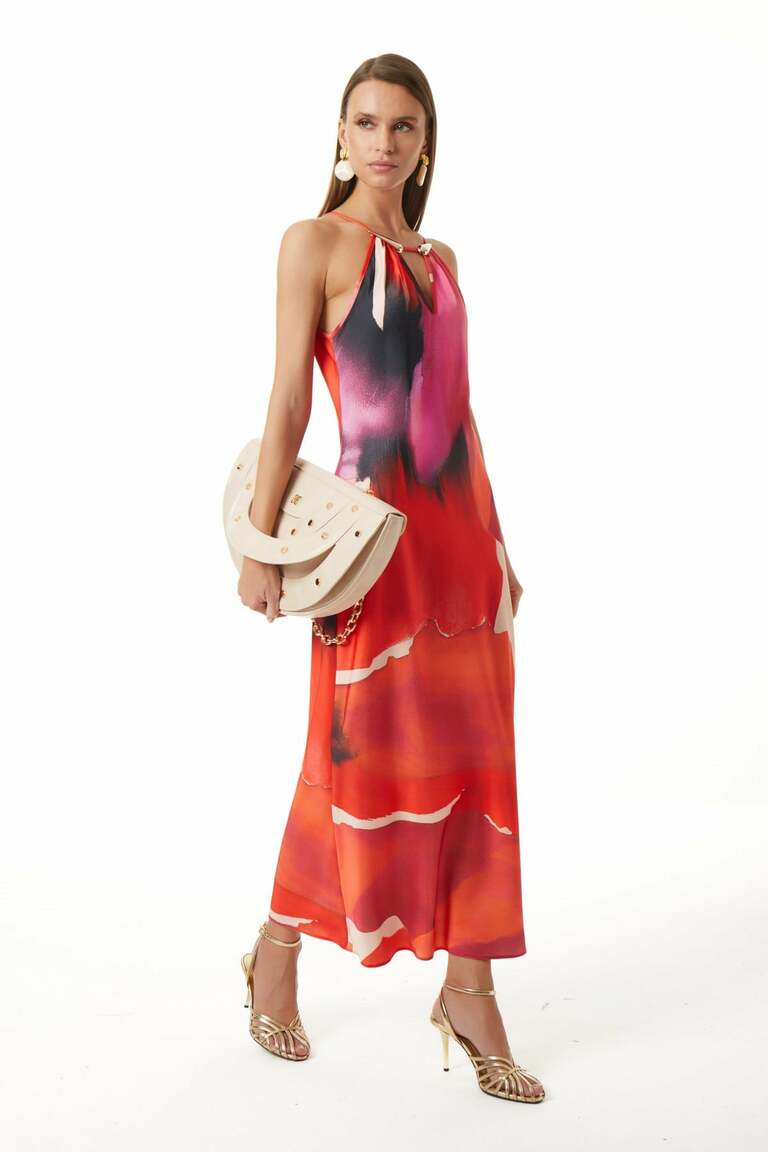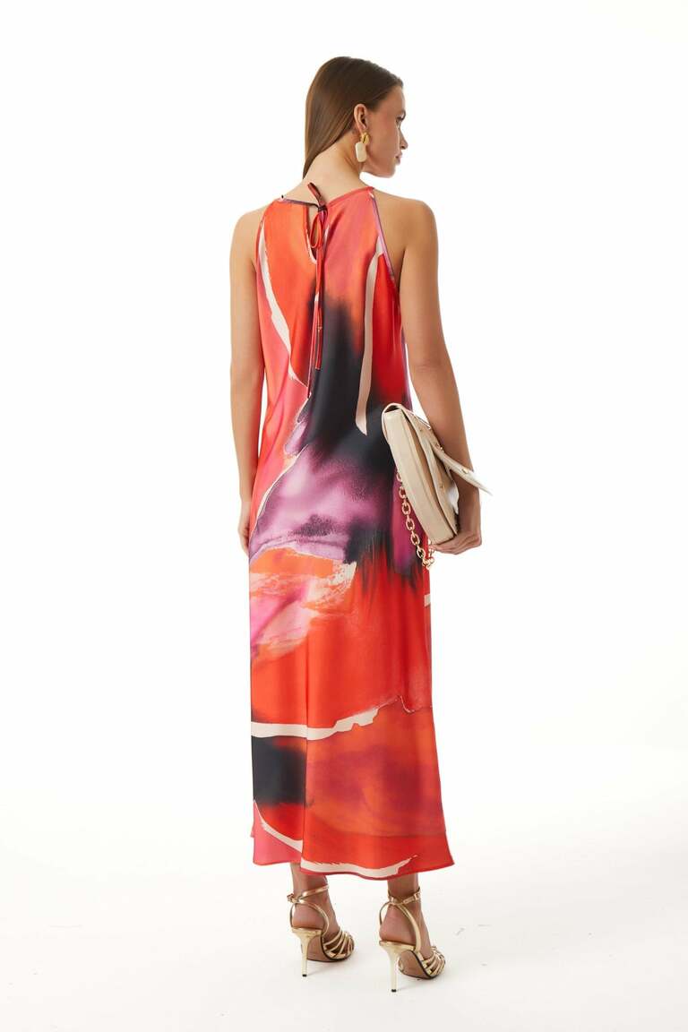 Önü V Yaka-Yakası Büzgülü-Gold Metal Aksesuarlı-Astarsız-İnce Askılı-Arka Yakadan Bağcıklı-Midi Boy