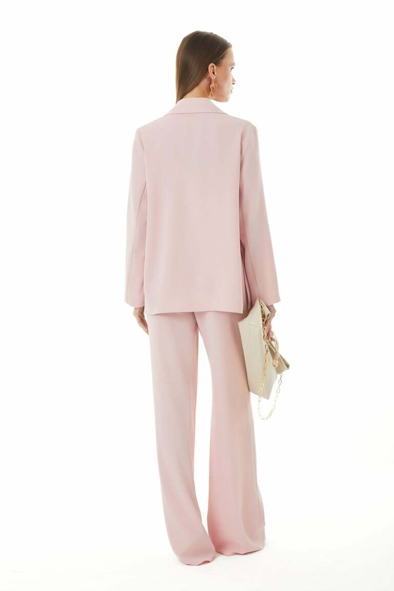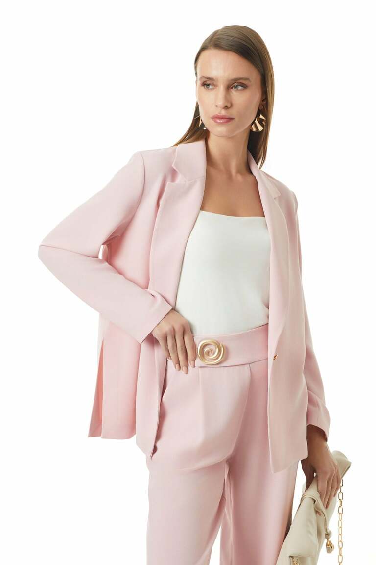 Gold Düğmeli Yırtmaçlı Oversize Pembe Ceket