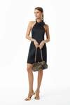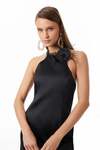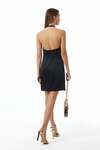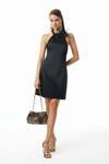 Çiçek Broş Aksesuarlı, Arka Ortada Gizli Fermuarlı, Arka Yaka Birit Düğmeli, Astarlı, Saten Kumaş Mini Boy Elbise