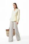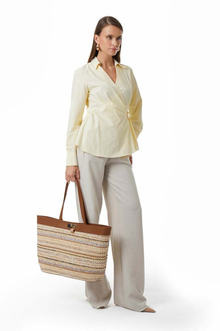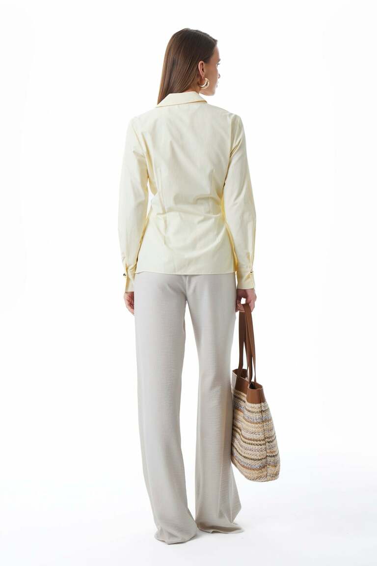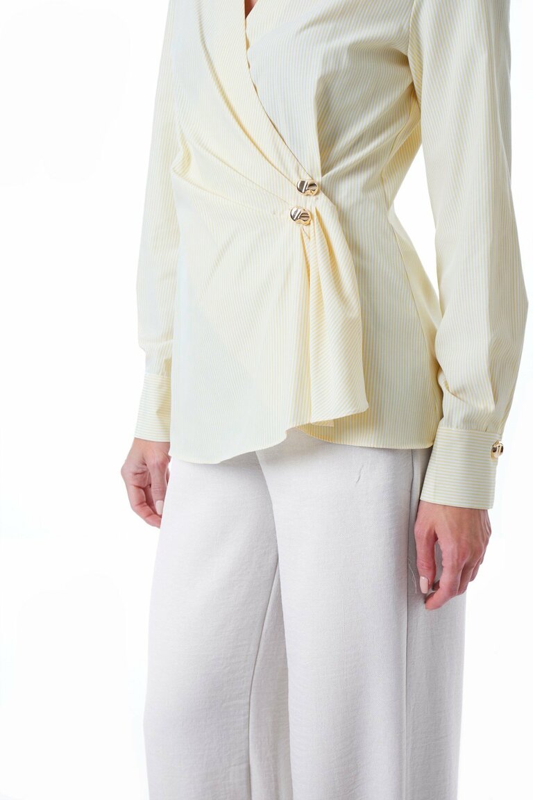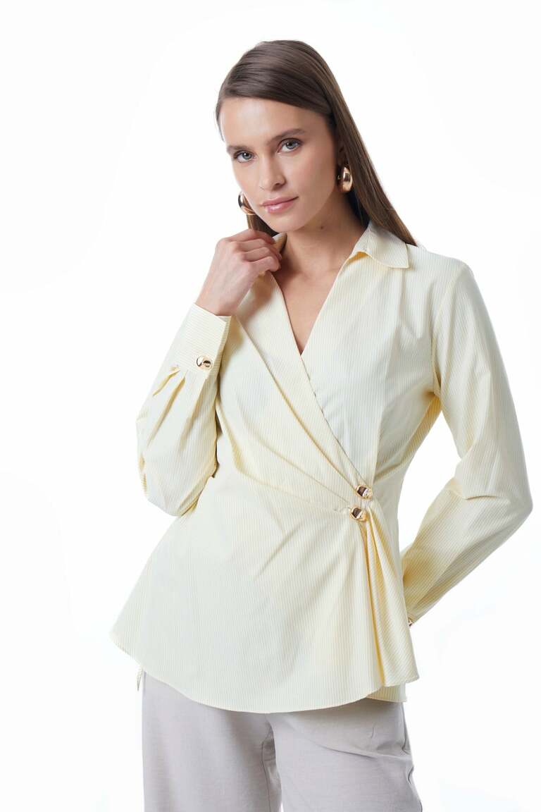 Gold Metal Düğmeli-Önde Pili Detaylı-Kolu Düğmeli Manşetli-Kruvaze-Uzun Kollu Gömlek.