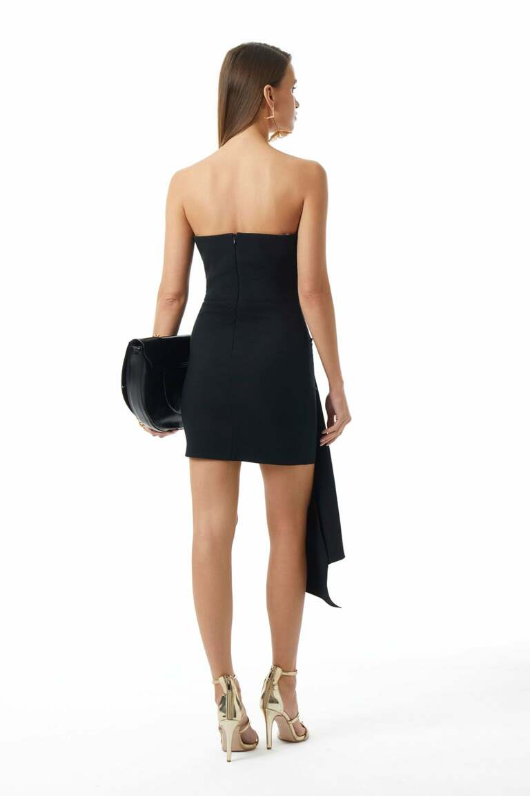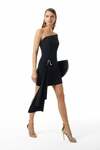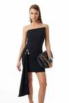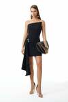 Asimetrik Yakalı-Önde Kuşak Detaylı-Taşlı Gold Metal Aksesuarlı-Astarlı-Gizli Fermuarlı